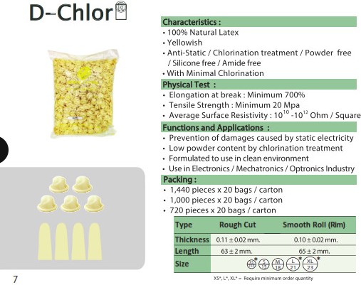 | Tên sản phẩm | Bao ngón tay phòng sạch D-CHLOR® Smooth Roll |